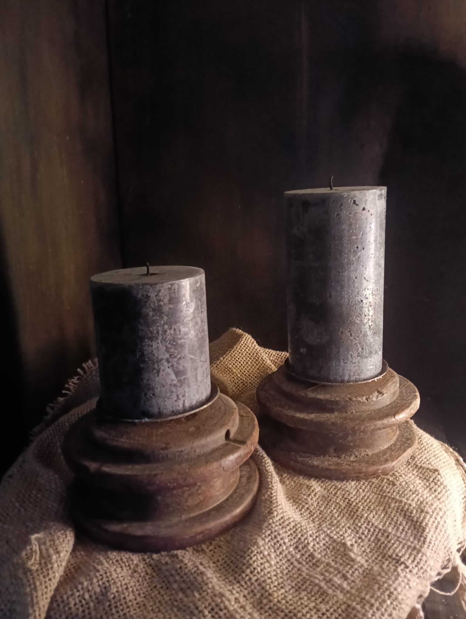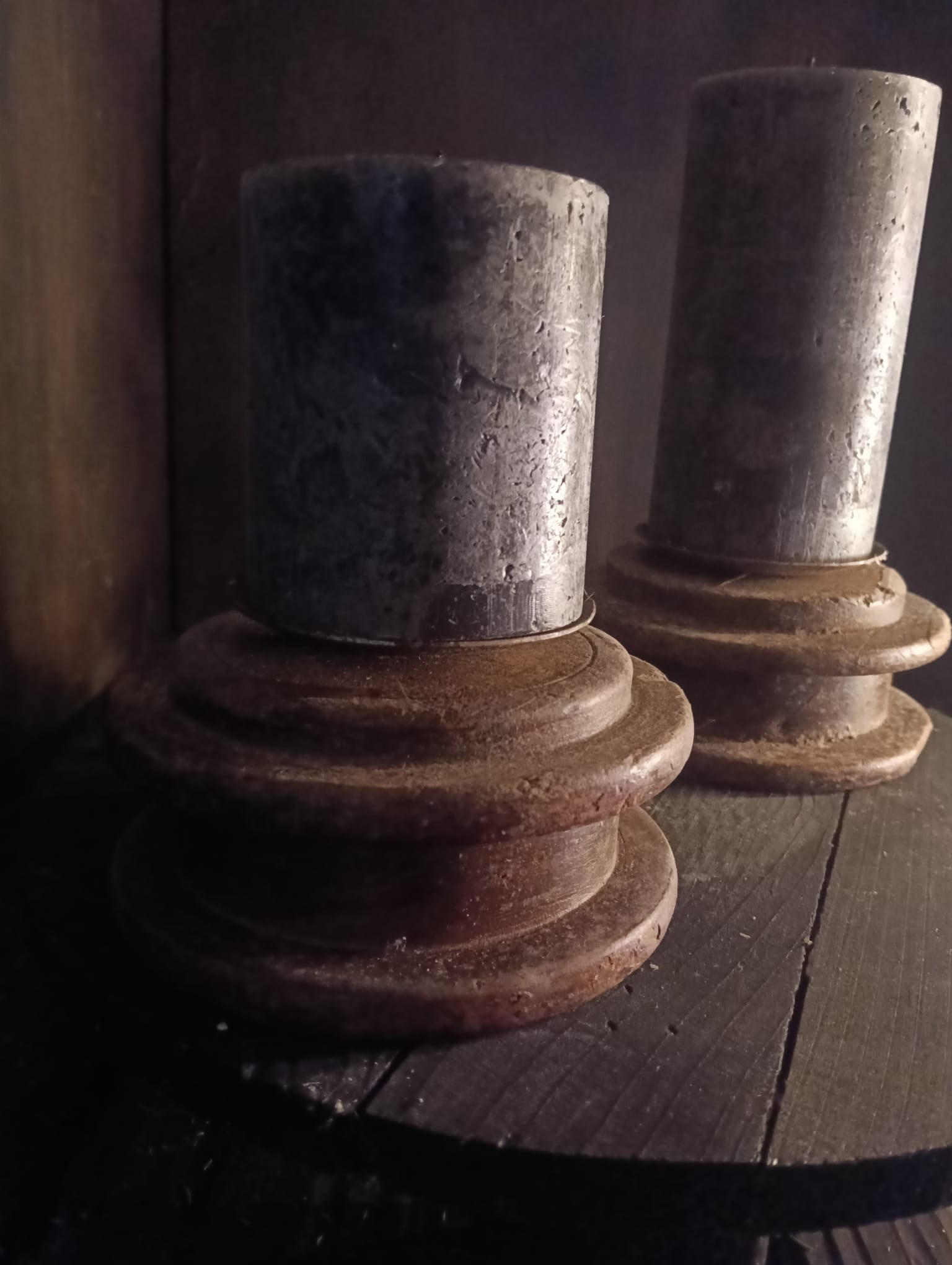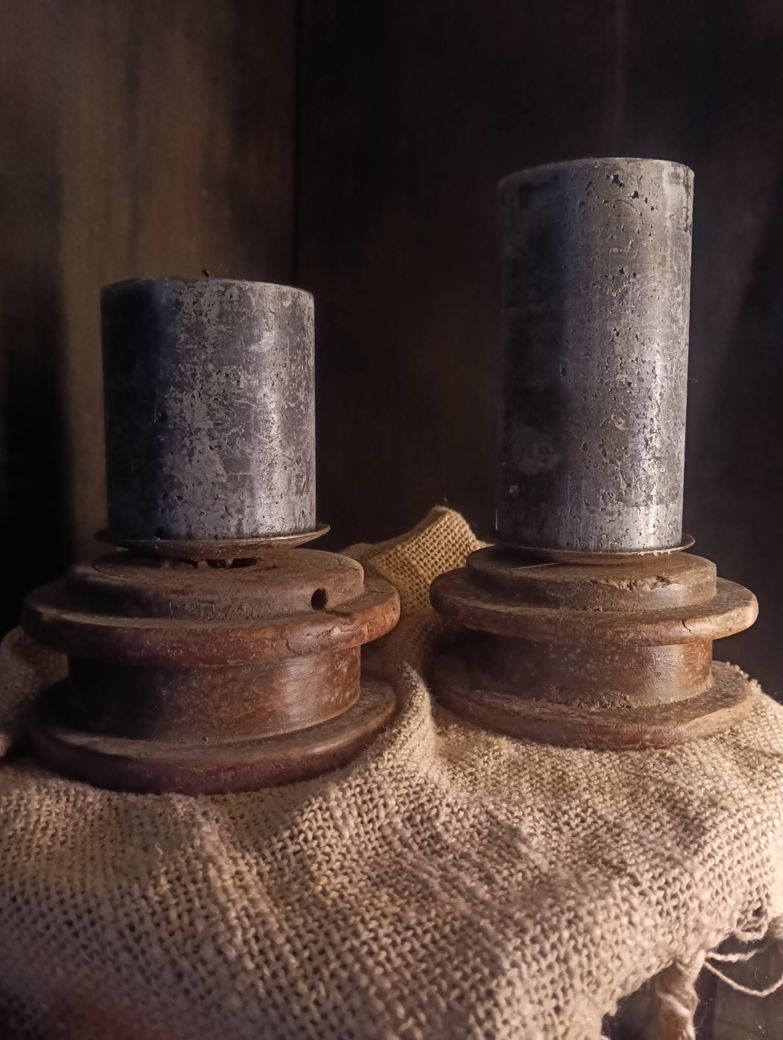 Deze mooie kandelaars zijn gemaakt in India. En zijn gemaakt van oude houten katrollen.