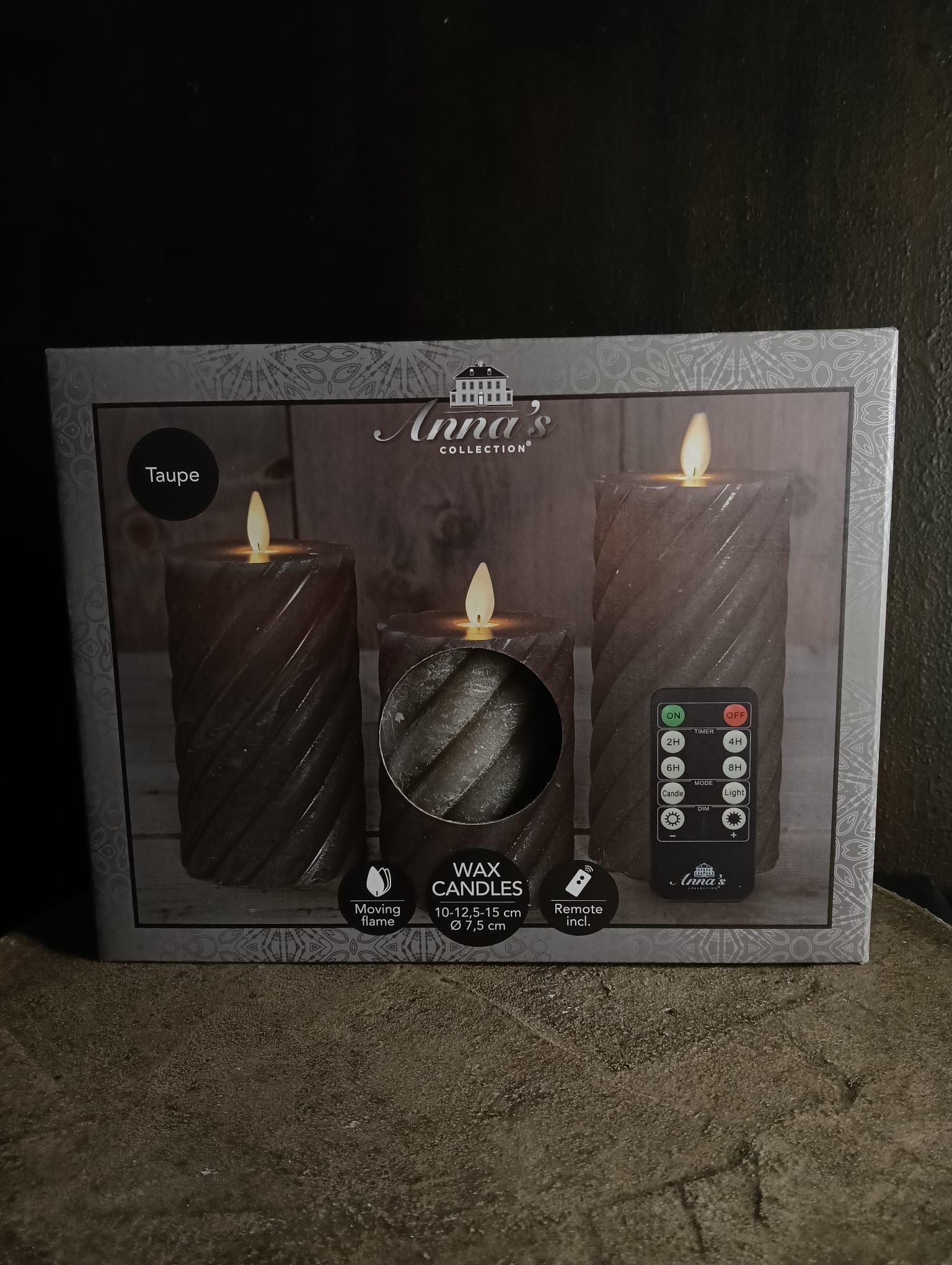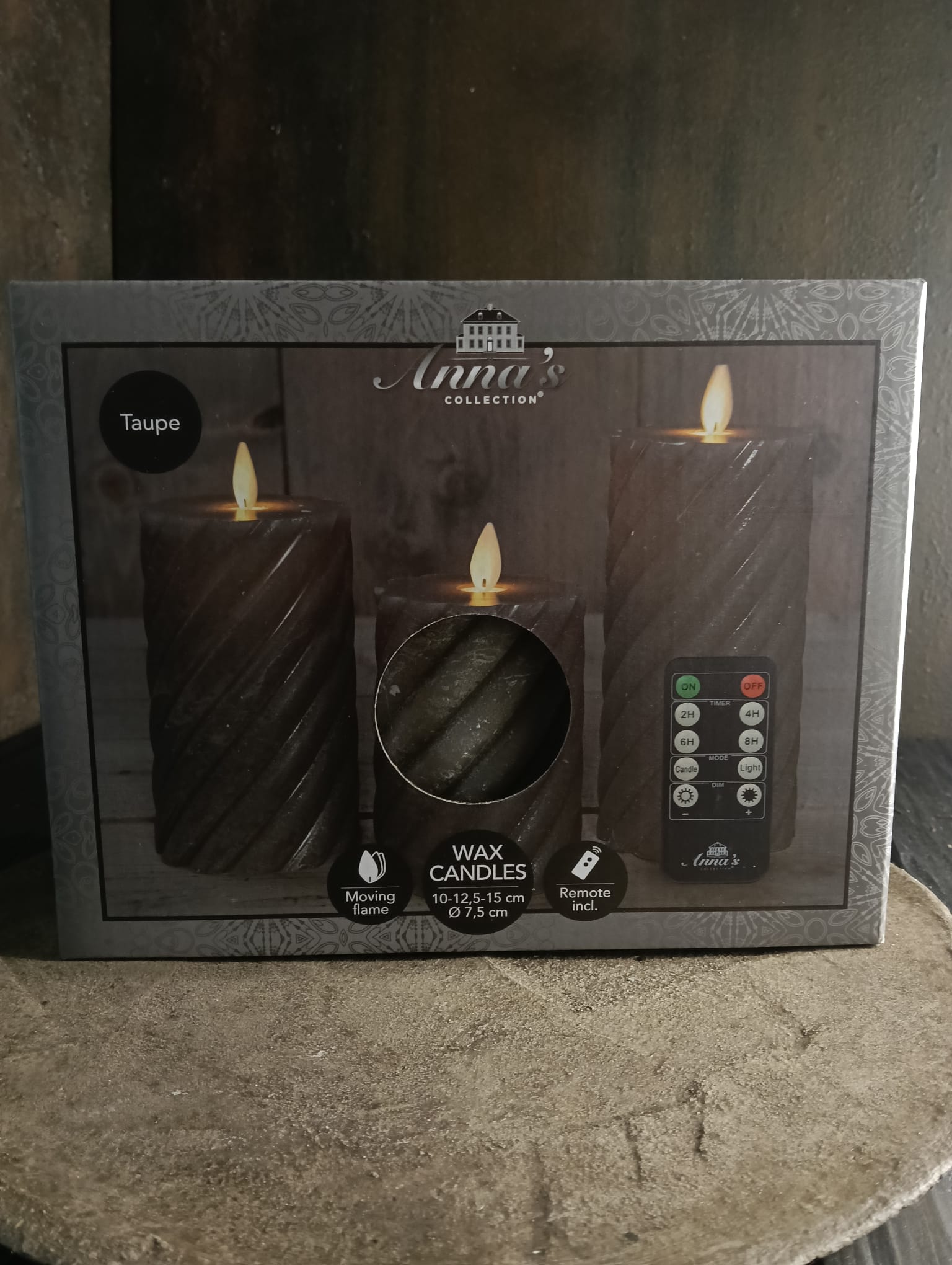 Mooie led kaarsen van Anna’s collection. Met mooie beweegbare vlam. Set van 3 met afstandsbediening.