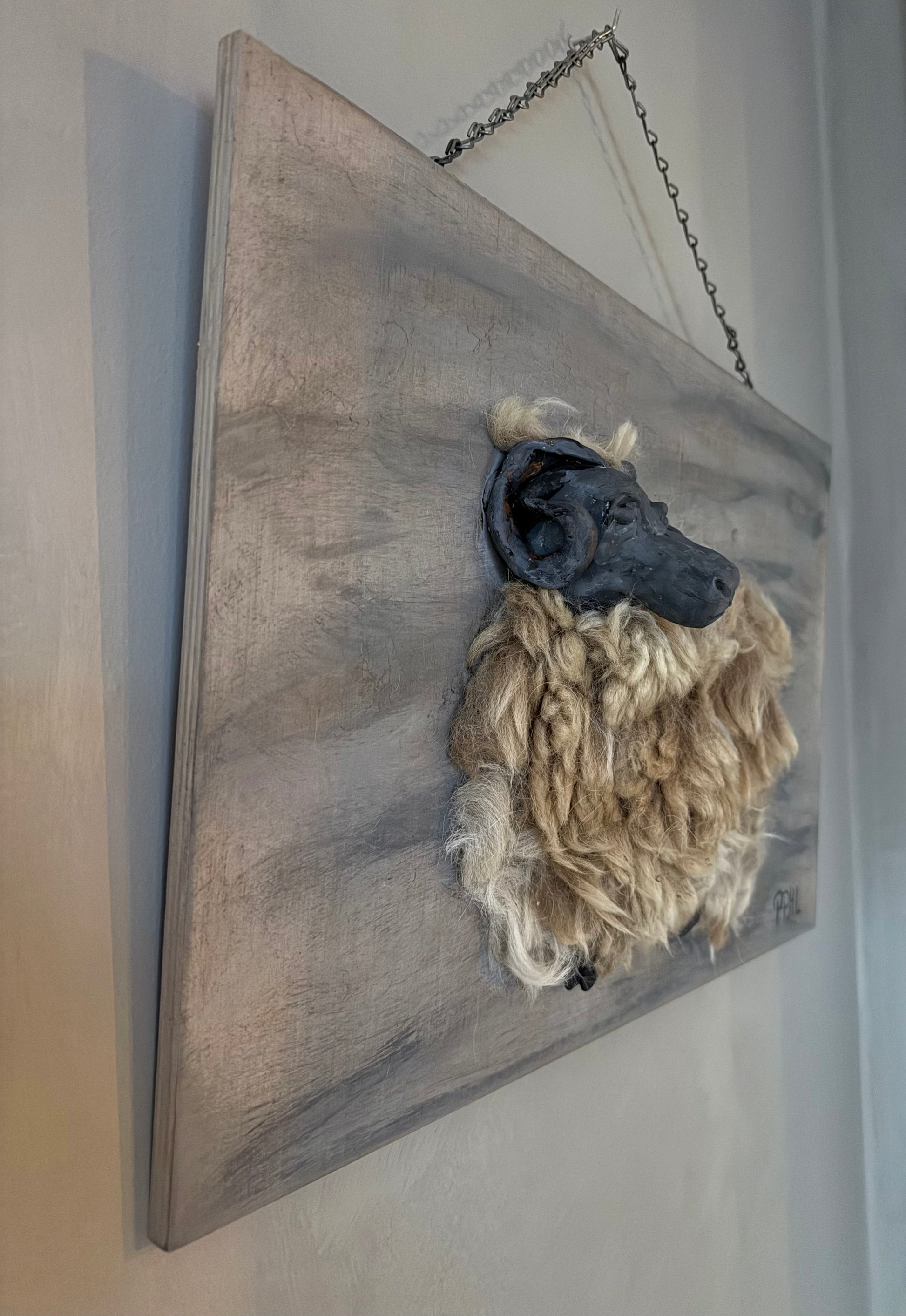Dit bijzondere kunstwerk is met liefde en aandacht met de hand gemaakt. Het schaap is bevestigd op een houten paneel en voorzien van echte wol, wat zorgt voor een warme, natuurlijke uitstraling. Het 3D-hoofd geeft het werk extra diepte en karakter, waardoor het echt tot leven komt.