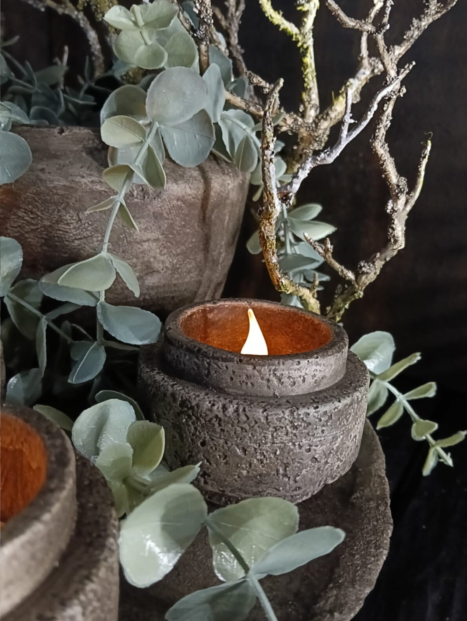 Ontdek deze betonnen waxinelichthouder van PMR, met de hand gemaakt en vol karakter.