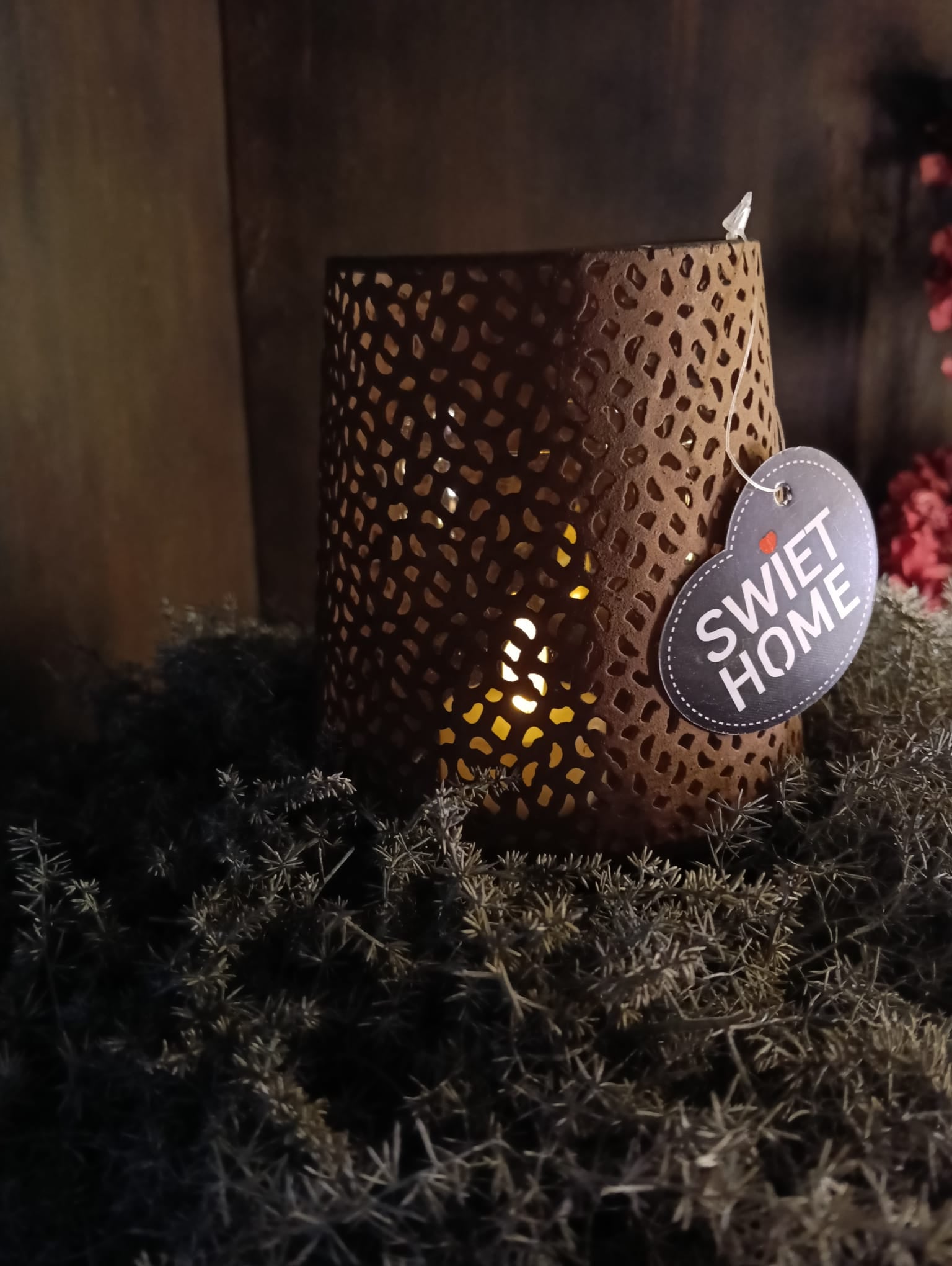 Leuke roestige waxinelichthouder.